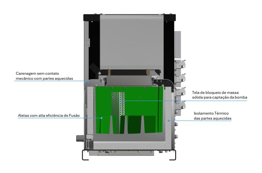 capaz de atender desde as necessidades mais simples até as mais precisas e exigentes, no processo de aplicação de hot melt.